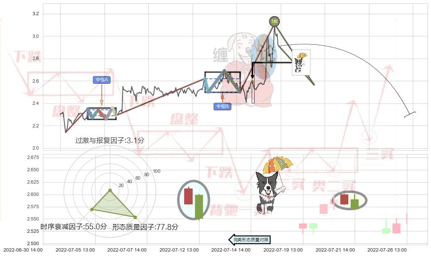 从2022-06-14 10:00至2022-07-15 14:00,共包含59个小时,阶段股价下跌-2.42%,阶段股价变动位移路程比: 1 : 22