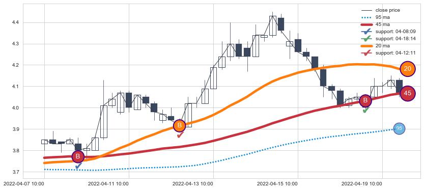 👍 尚未达到多条均线预测的最高波峰价格的平均值, 预期继续上涨
