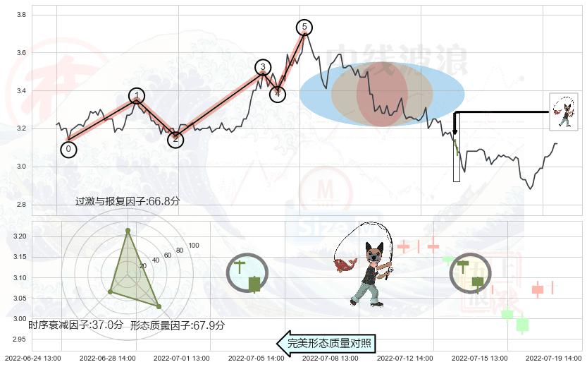 ➢ 🕰 价格走势在2022-07-13 14:00:00至2022-07-13 14:00:00期间形成单针探底(定海神针),残存影响值:3.54