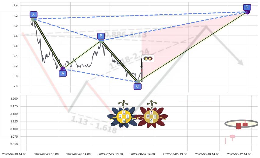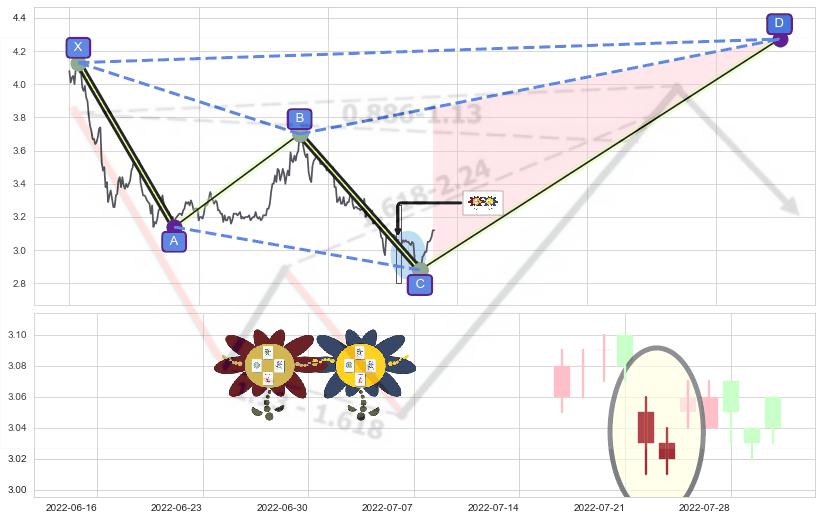 ➣ 早晨之星(黎明之星) + 谐波鲨鱼下沉击穿c上涨拐点信号叠加后【目标达成率】极低,【看多】信号叠加【存续影响极大】