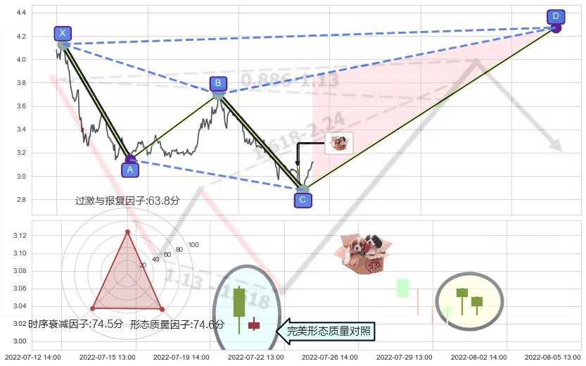 ➢ 底部尽头线(上山虎) 🔜 谐波鲨鱼下沉击穿c上涨拐点 综合量化分数:63.97 【强烈看多】