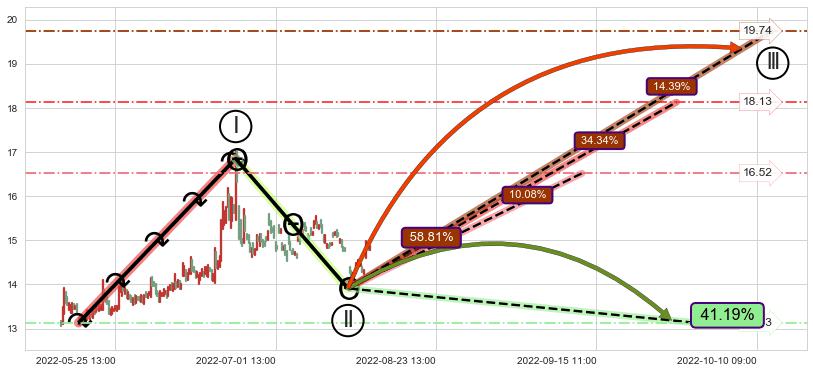 ➢ 循环浪继续向上【最低】位置(09-13:14, 16.52),匹配聚类样本比例17.14%, 可能性概率10.08%