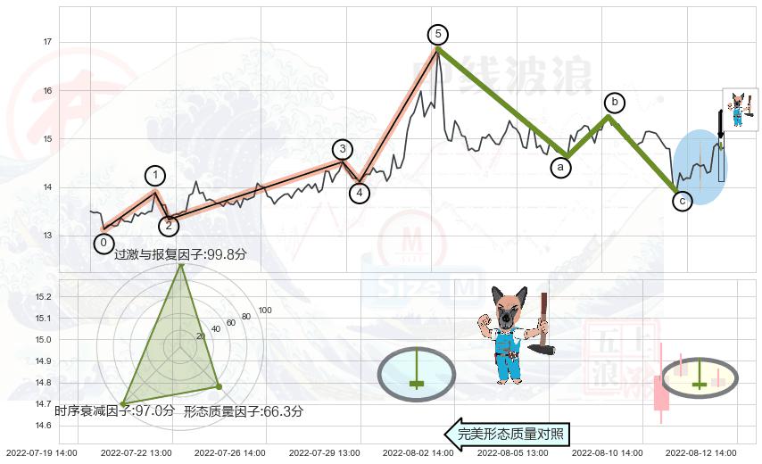 从2022-08-02 14:00至2022-08-12 14:00,共包含15个小时,阶段股价上涨6.47%,阶段股价变动位移路程比: 1 : 2