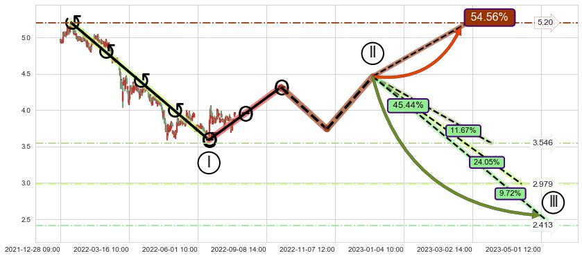 ➢ 循环浪继续向下【最低】位置(05-10:13, 2.413),匹配聚类样本比例21.38%, 可能性概率9.72%