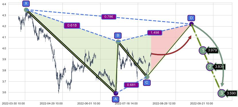 ➣ D点拟合预测价格4.22,距离最后交易收盘价格3.950相差 +6.82%