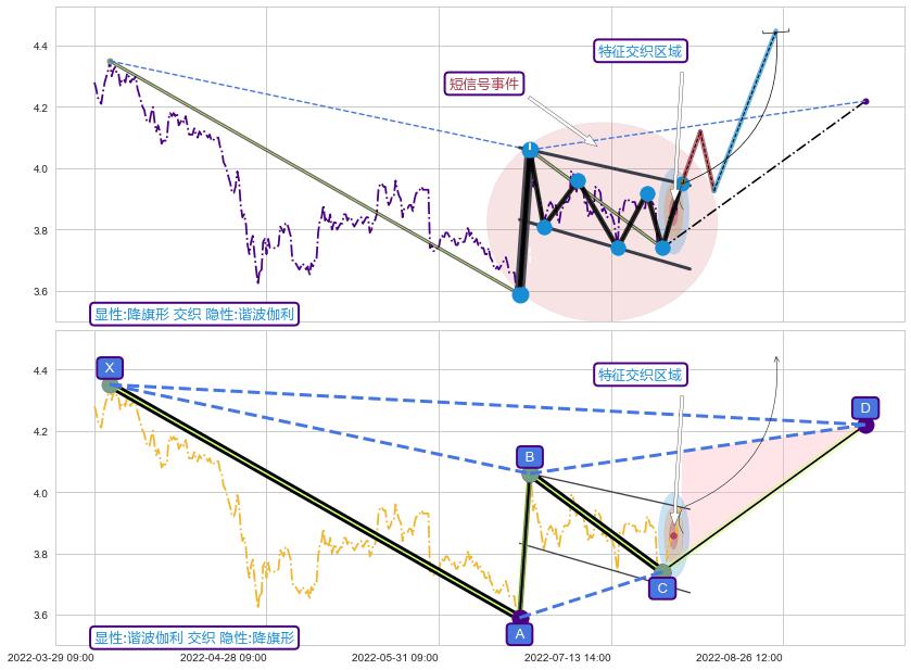 ➢ 降旗形属【短级别信号事件】谐波伽利属【长级别信号事件】长短周期组合信号事件, 短长事件长度比28.74%