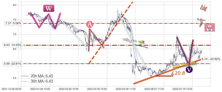 ♘ 支撑价格位6.63,可信任强度64.76%,距离最后交易2022-08-12 13:00形成的收盘价格7.76相差 -14.55%