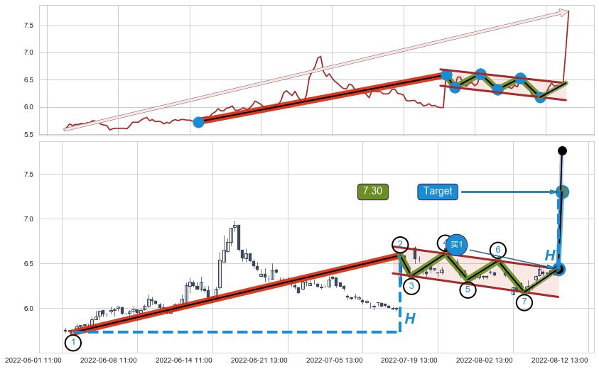 ➣ 最小中继整理涨幅→𝐇: 0.8600 (𝐇旗杆的长度:旗杆起点→顶点)