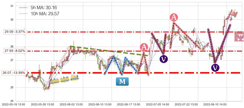 ♞ 5小时均线:30.16,10小时均线:29.57→ 快线>慢线