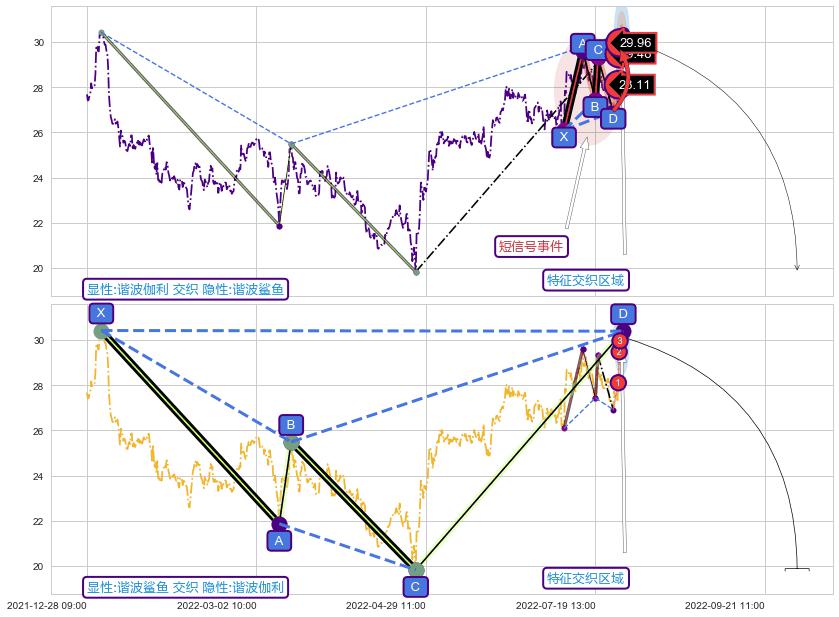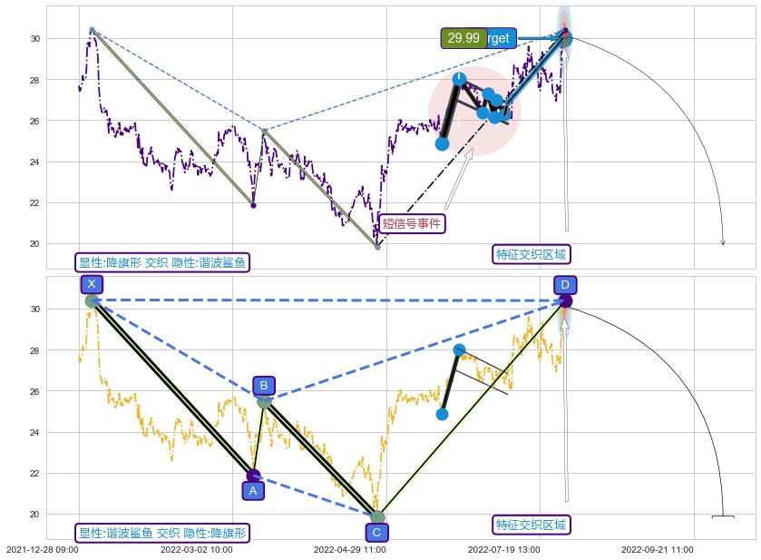 ➢ 降旗形属【短级别信号事件】谐波鲨鱼属【长级别信号事件】长短周期组合信号事件, 短长事件长度比14.10%
