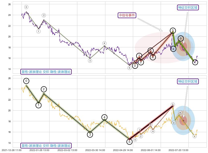 ➣ 波浪理论:猜想击穿破位c点后继续下跌 → 下跌 → 风险信号 → 小趋势跟踪