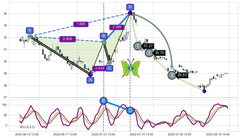 ➣ 已完成【蝴蝶】形态起点X: 06-10:13, 终点D: 07-07:13, 共54交易小时