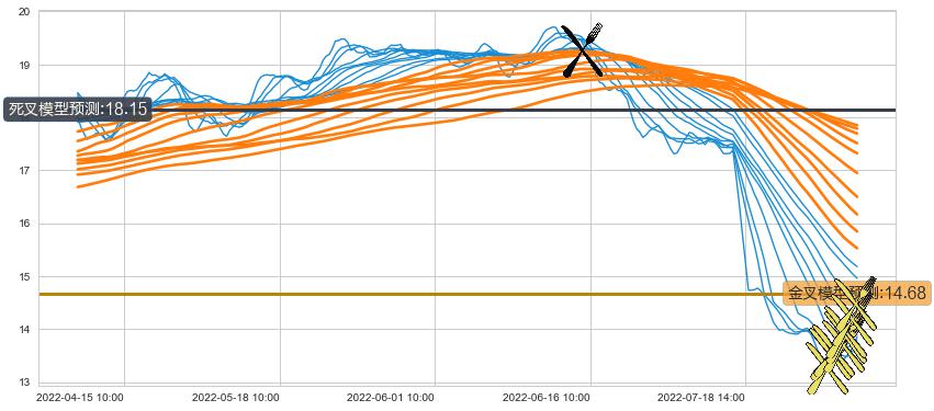 ➣ 70小时均线于(06-15 13:00: 19.24)形成【死叉】基于【死叉历史模型】预测死叉后最低波谷价格: 18.08, 死叉后最低价格13.12,已经下跌超出预测最低波谷价格, 预期反弹