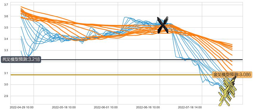 ➣ 70小时均线于(06-16 14:00: 3.521)形成【死叉】基于【死叉历史模型】预测死叉后最低波谷价格: 3.216, 死叉后最低价格2.840,已经下跌超出预测最低波谷价格, 预期反弹
