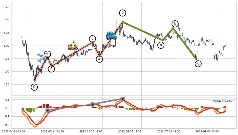 ➣ 波浪理论:猜想达到c点后小回调终止反转上涨 → 上涨 → 【拐点】临近 → 阶段均值回复结束后继续大周期趋势跟踪