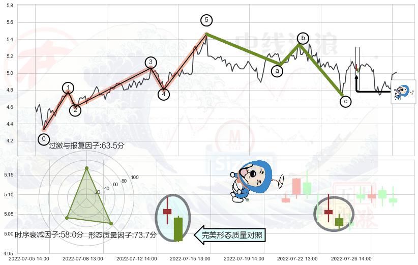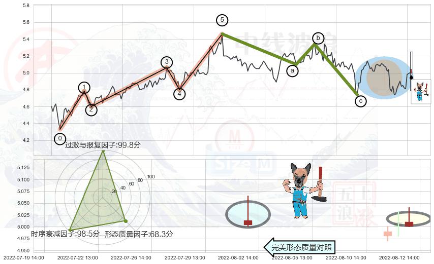 从2022-07-15 14:00至2022-08-12 14:00,共包含39个小时,阶段股价上涨5.90%,阶段股价变动位移路程比: 1 : 5