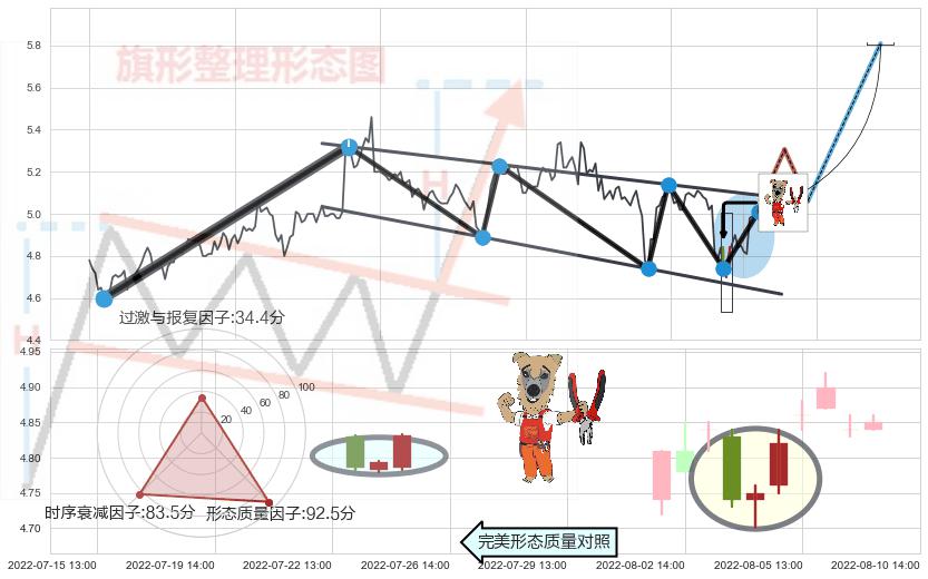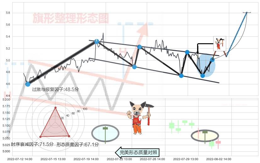 ➣ 【未确认突破,预测即将形成突破】降⚑旗形起点:05-06:11, 预测突破点:08-15:10,形态共228交易小时