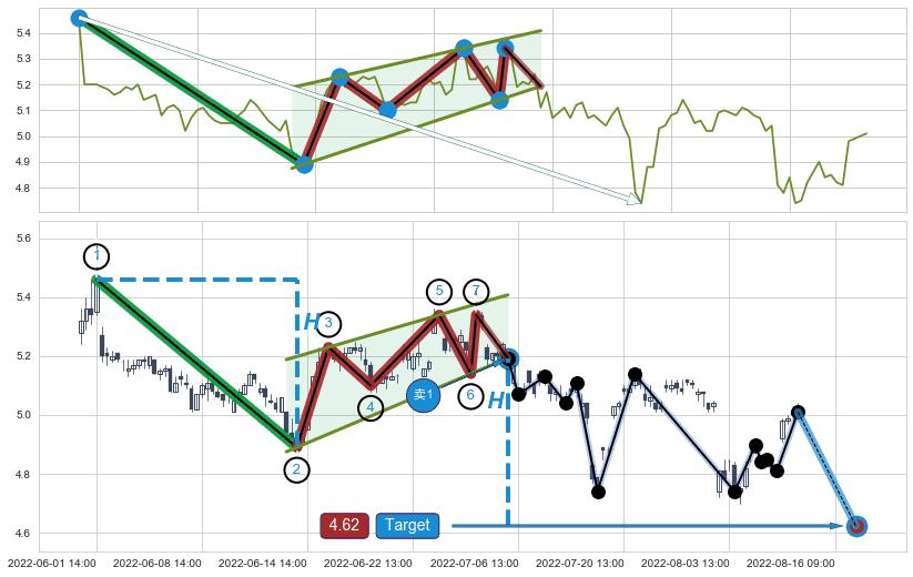 ➣ AI预测: 假定反转启动后, 第❶目标位置(09-21:12, 4.85)