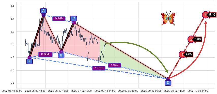 ➣ 未完成【蝴蝶】形态起点X: 05-24:14, 已到达C点: 06-24:14, 预测最终D点: 09-14:11, 共287交易小时