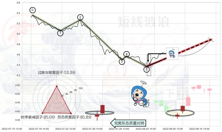 ➢ 🕰 价格走势在2022-08-04 14:00:00至2022-08-05 13:00:00期间形成上涨螺旋桨形态,残存影响值:6.28