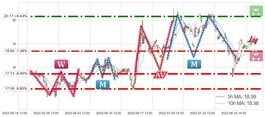 ♘ 阻力价格位20.17,可信任强度96.22%,距离最后交易2022-08-12 14:00形成的收盘价格18.95相差 +6.43%