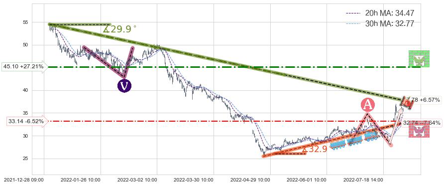 ♘ 阻力价格位45.10,可信任强度62.45%,距离最后交易2022-08-12 14:00形成的收盘价格35.45相差 +27.21%