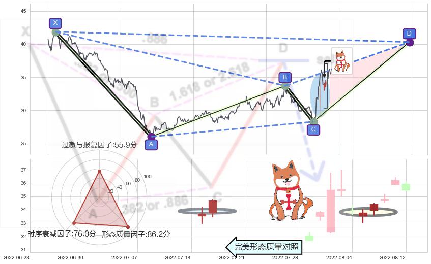 ➢ 阳包阴形态 🔜 谐波蝙蝠c拐点上涨支撑 综合量化分数:52.40 【中性】
