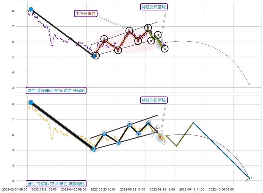 ➣ 波浪理论:猜想击穿破位c点后继续下跌 → 下跌 → 风险信号 → 小趋势跟踪