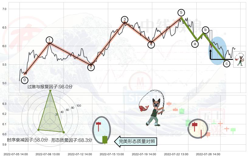 ➢ 🕰 价格走势在2022-08-09 13:00:00至2022-08-09 14:00:00期间形成上涨螺旋桨形态,残存影响值:6.64