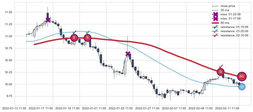 ➢ 最优均线组合共正确确认支撑阻力信号7处,正确确认率 70.00%
