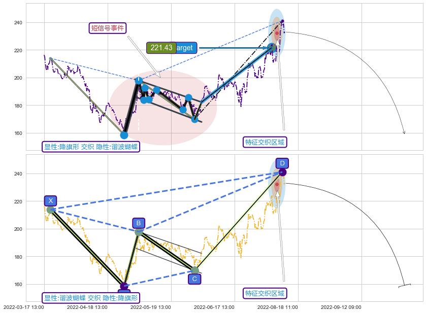 ➢ 降旗形属【短级别信号事件】谐波蝴蝶属【长级别信号事件】长短周期组合信号事件, 短长事件长度比33.61%