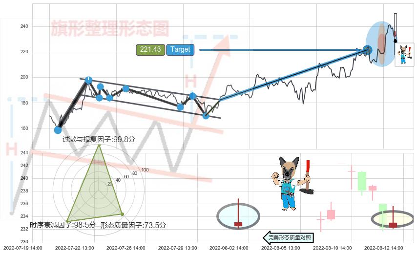 ➢ 降旗形:上涨目标target已达成:猜想强阻力位临近,预期回调下跌(均值回复)