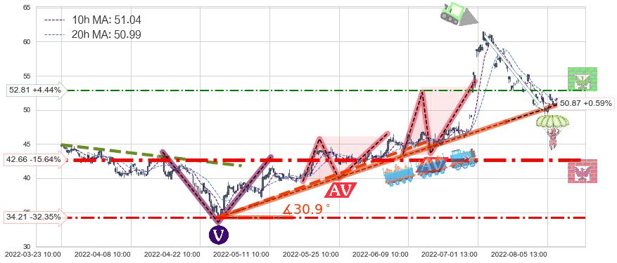 ♘ 阻力价格位52.81,可信任强度44.72%,距离最后交易2022-08-12 14:00形成的收盘价格50.57相差 +4.44%