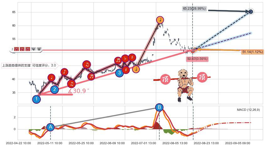 ➢ 预测:2022-08-15 12:00,【试探支撑】稳定目前上涨趋势的前提下,预测价格:51.14