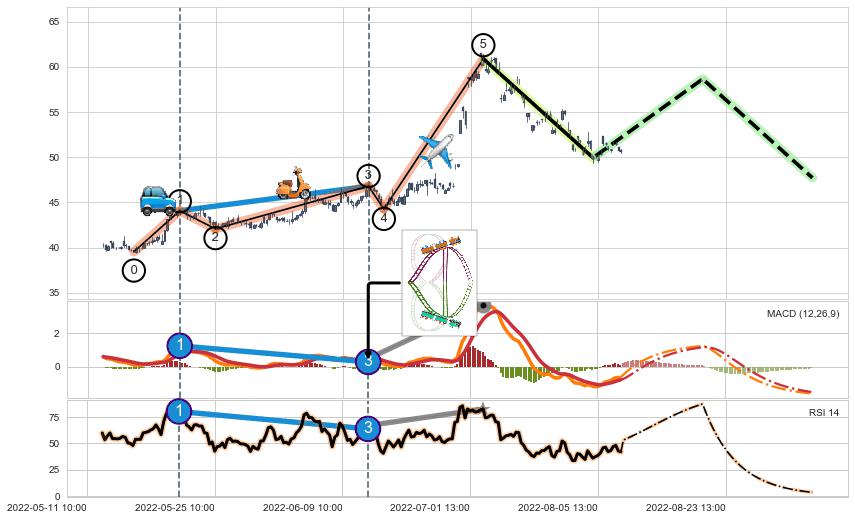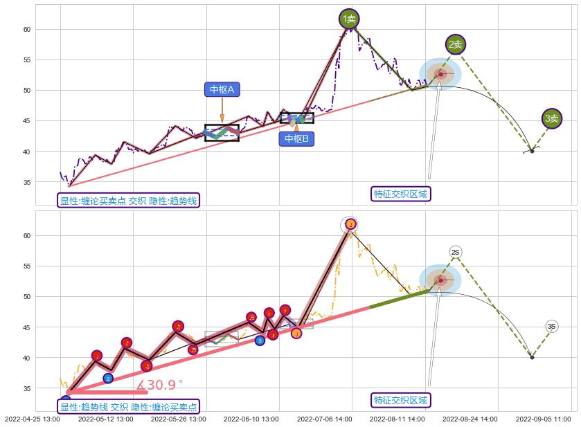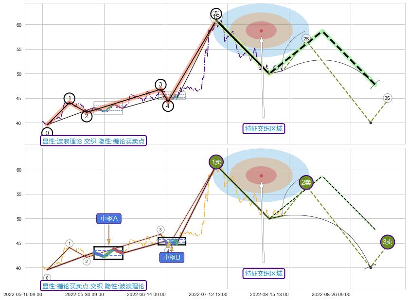 ➣ 缠论买卖点:猜想2卖持续蓄力下跌至3卖 → 下跌 → 风险信号 → 小趋势跟踪