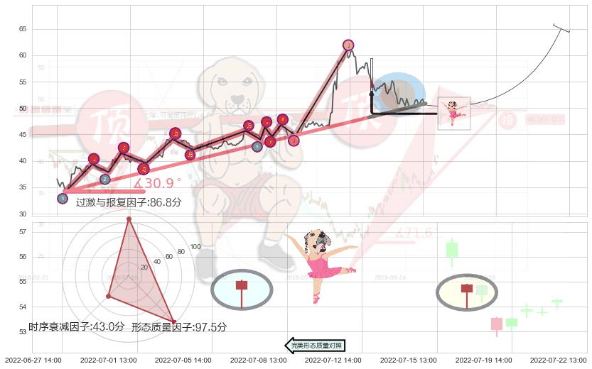 从2022-04-26 14:00至2022-07-15 13:00,共包含208个小时,阶段股价上涨53.00%,阶段股价变动位移路程比: 1 : 3,上涨趋势角度: 30.9