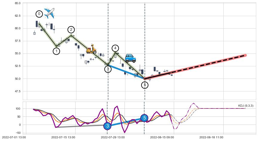 ➣ 【KDJ】缠论走势出现【常规背离 & 反转信号】背离程度6.92%,背离夹角角度51.8˚,背离程度较小
