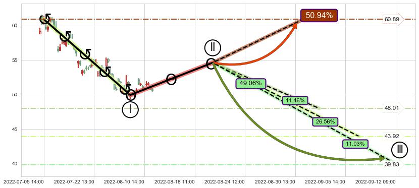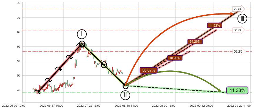 2022-06-14: 第一支撑位44.04有效抑制了下跌浪,成功阻止了价格的继续下跌。