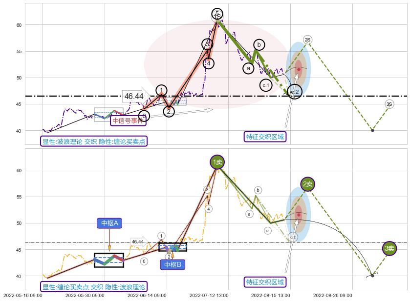 ➣ 缠论买卖点:猜想2卖持续蓄力下跌至3卖 → 下跌 → 风险信号 → 小趋势跟踪