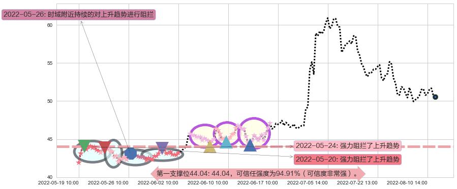 2022-05-20: 第一支撑位44.04强力阻拦了上升趋势,成功阻止了价格的继续上涨。