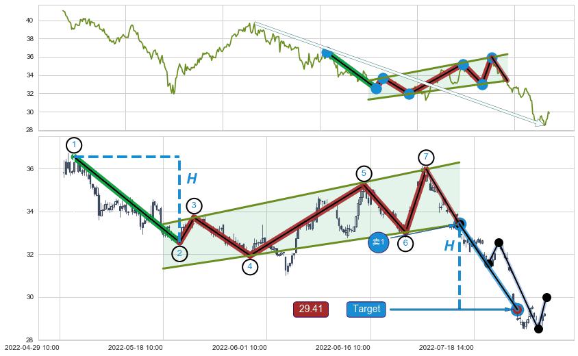 ➣ 最小中继整理跌幅→𝐇: 3.99 (𝐇旗杆的长度:旗杆起点→顶点)