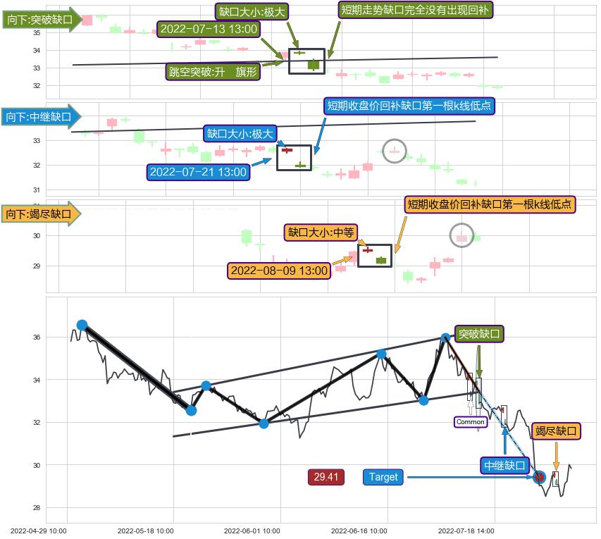 ➢ 2022-08-09 13:00形成:向下跳空【竭尽】缺口