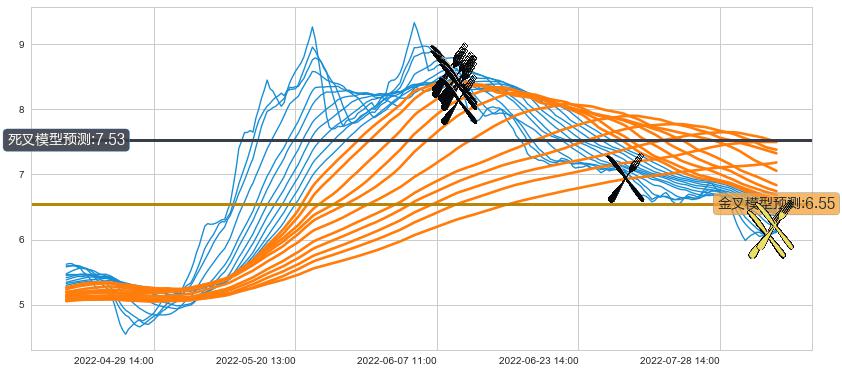 ➢ 30小时均线于(06-08 10:00: 8.62)形成【死叉】基于【死叉历史模型】预测死叉后最低波谷价格: 8.10, 死叉后最低价格5.89,已经下跌超出预测最低波谷价格, 预期反弹