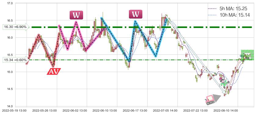 ♘ 阻力价格位16.30,可信任强度88.86%,距离最后交易2022-08-12 14:00形成的收盘价格15.25相差 +6.90%