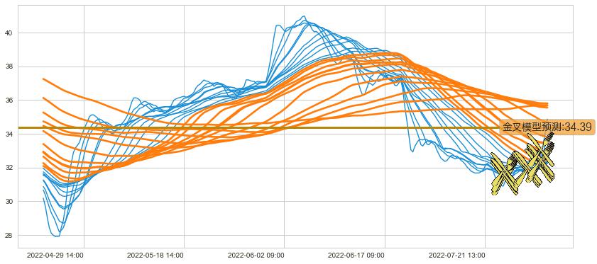 ➢ 70小时均线于(08-10 14:00: 32.44)形成【金叉】基于【金叉历史模型】预测金叉后最高波峰价格: 35.08, 金叉后最高价格35.85,已经上涨超出预测最高波峰价格, 预期回调