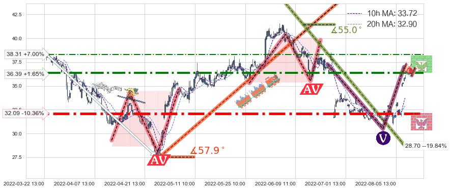 ♘ 阻力价格位36.39,可信任强度77.13%,距离最后交易2022-08-12 14:00形成的收盘价格35.80相差 +1.65%