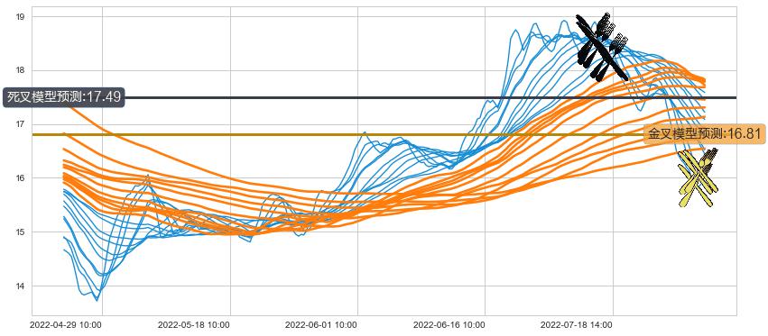 ➣ 34小时均线于(07-12 14:00: 18.63)形成【死叉】基于【死叉历史模型】预测死叉后最低波谷价格: 17.80, 死叉后最低价格15.57,已经下跌超出预测最低波谷价格, 预期反弹