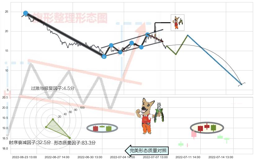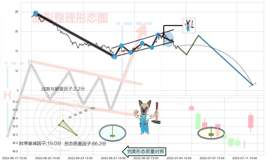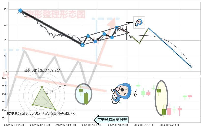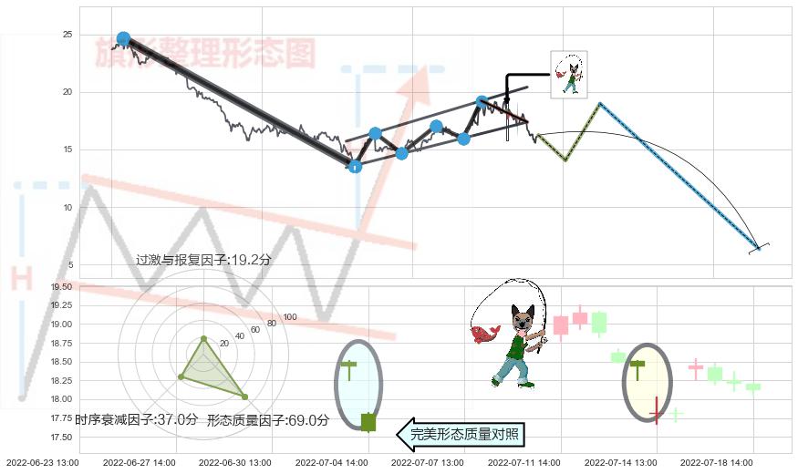 ➢ 下跌螺旋桨 🔜 升旗形支撑破位转换阻力下跌 综合量化分数:37.82 【偏空】