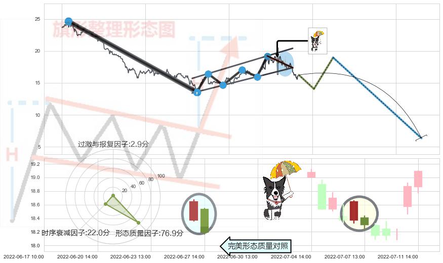 ➢ 下降插入线(坠落线) 🔜 升旗形支撑破位转换阻力下跌 综合量化分数:41.34 【偏空】
