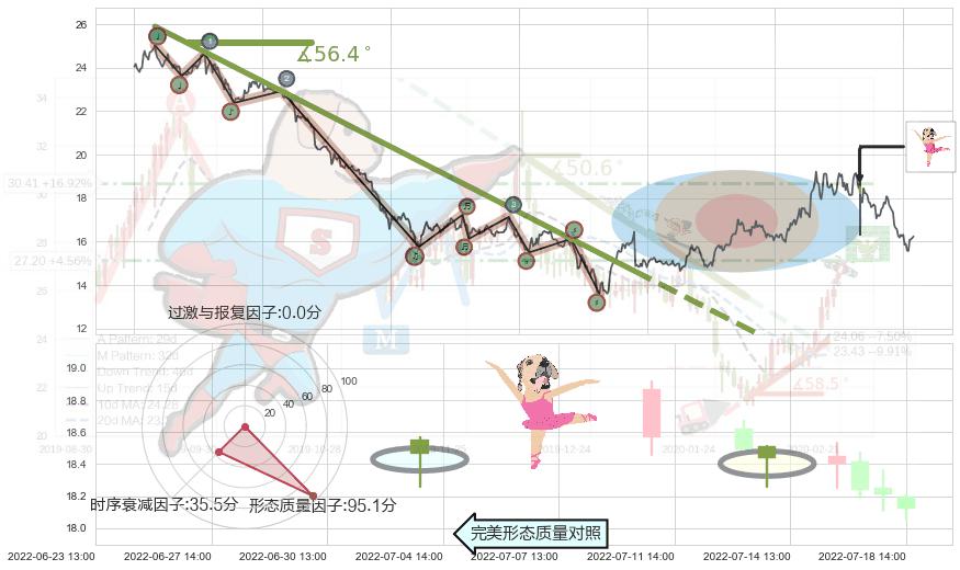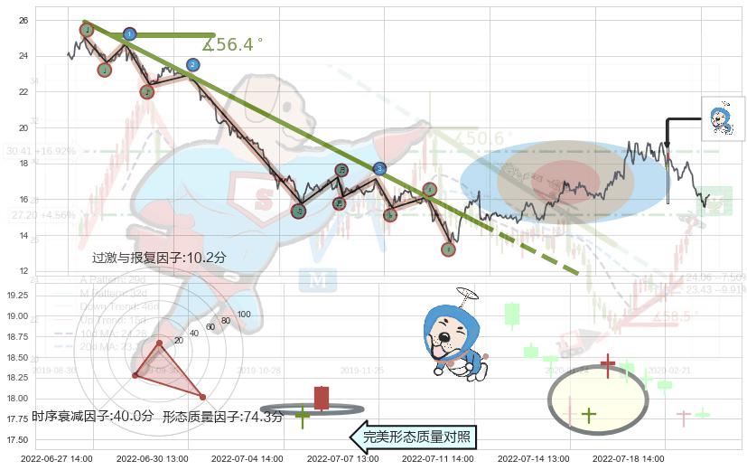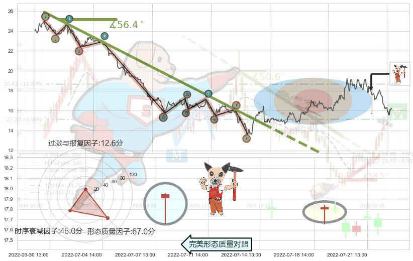 从2022-01-10 14:00至2022-05-09 13:00,共包含374个小时,阶段股价下跌-41.76%,阶段股价变动位移路程比: 1 : 6,下跌趋势角度: 56.4